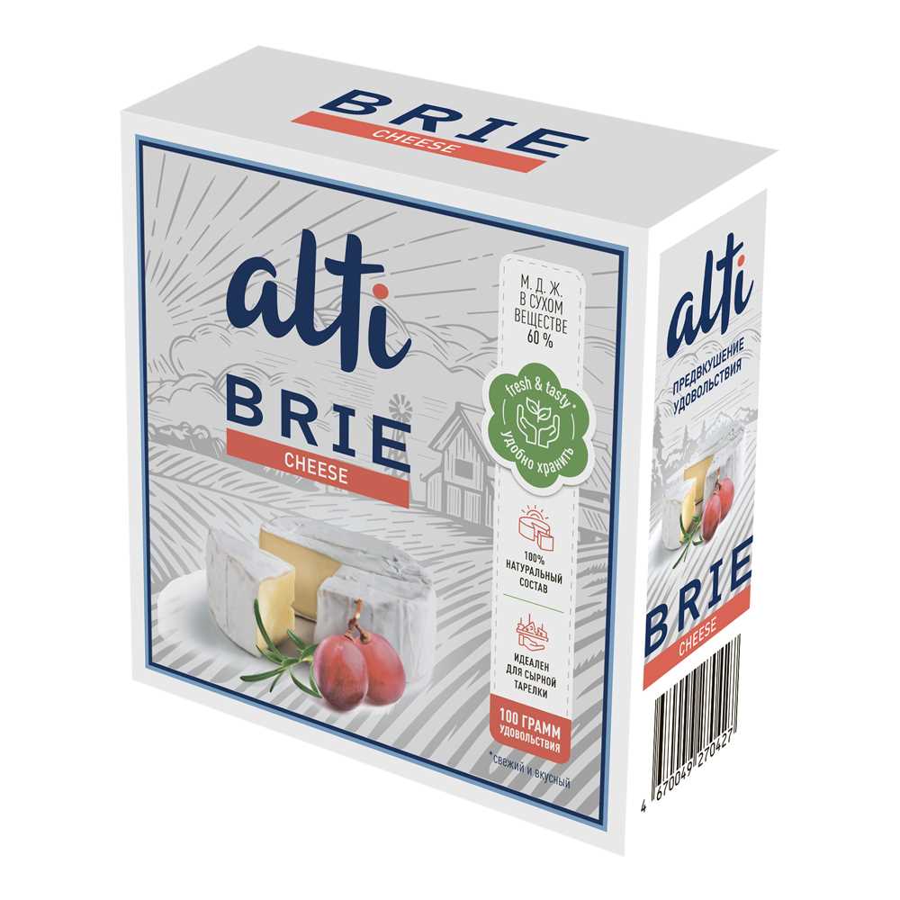 Сыр Бри Brie мягкий с белой плесенью 60% пастеризованный 100гр карт. кор БЗМЖ Alti™ Милкпром