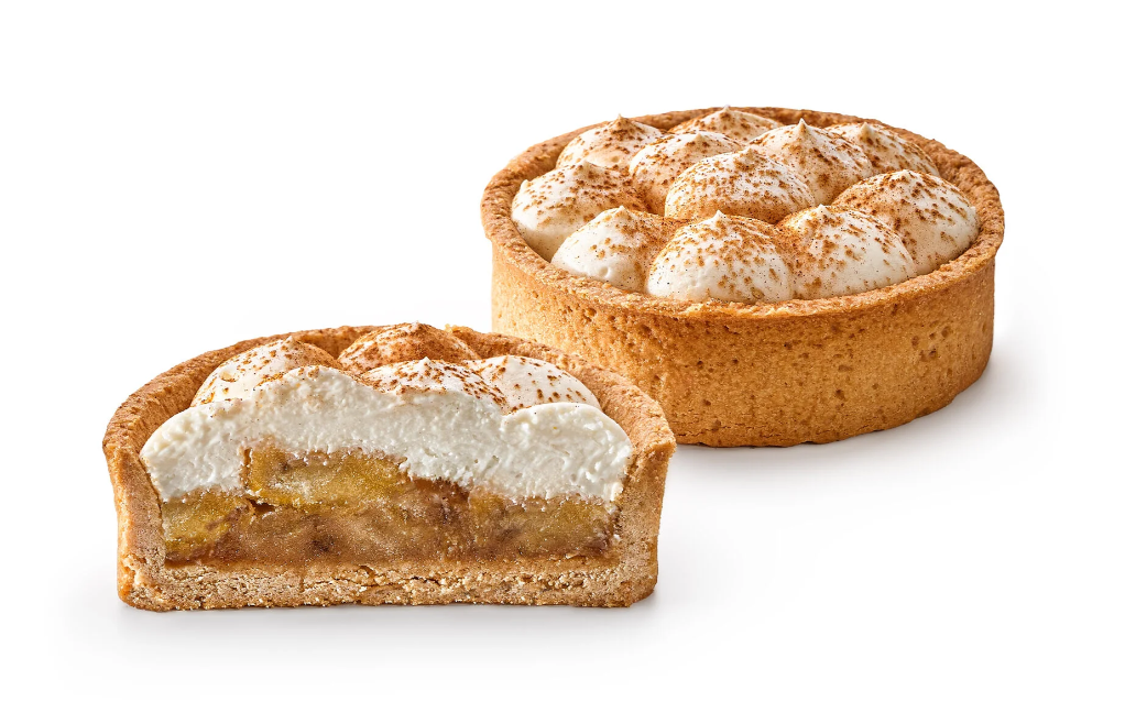 Известный английский десерт, песочная тарталетка с банановой начинкой в сочетании с нежным сливочно-сырным кремом и соленой карамелью